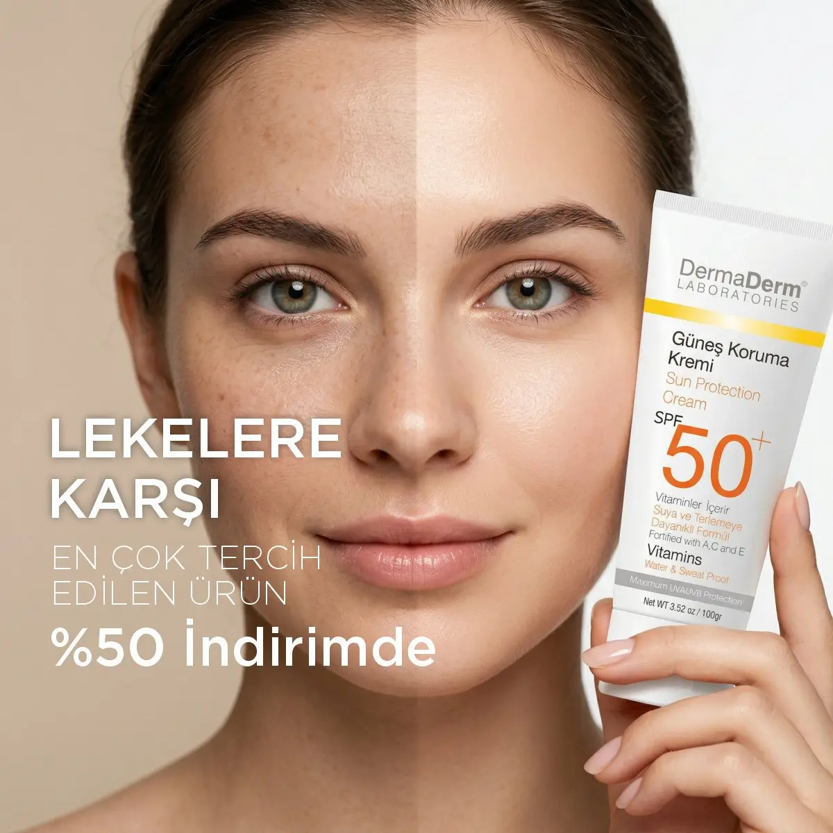 Leke Karşıtı Güneş Kremi SPF 50+ (Yüz İçin) 100 ml – Dermaderm